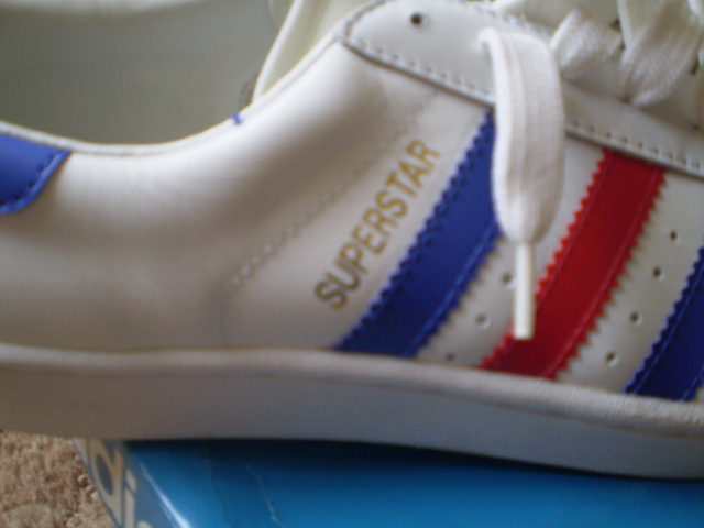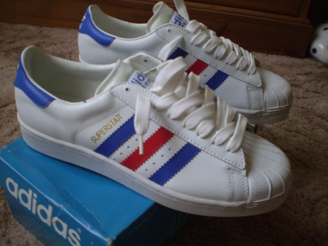 i am having a bit of a clear out and found a old pair of superstars.i bought these when i was manager or gilesports 12 years ago. they are a uk 8.5 and have never been worn. they have superstar in gold along the stripes and the tongue is nylon with adidas superstar writen on them alittle different.CoolCoolCool