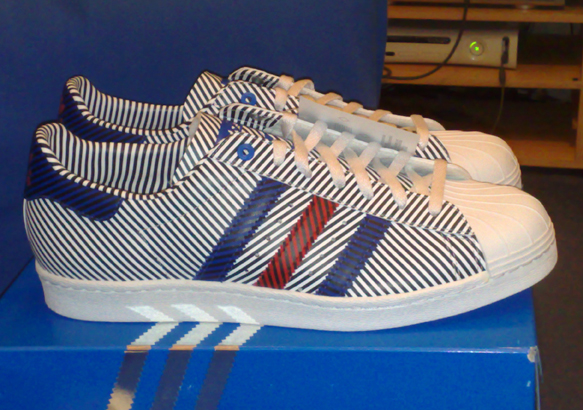 Went to visit my mate who recently got married, I don't know her husband that well but we get to talking about trainers and he collects too, mainly Nikes though. See a couple of 35th boxes in his collection, have a peak and there they are. Box fresh, never been worn. My size (they were a size too big for him).