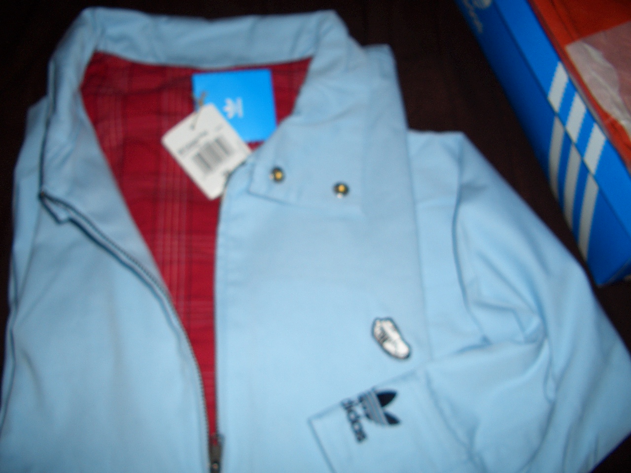 It looks like a g-9 baracuta jacket(did I spell it right my english brudders?)It has heavy duty snaps and a plaid lining.The superstar on the front is just the shit!!!