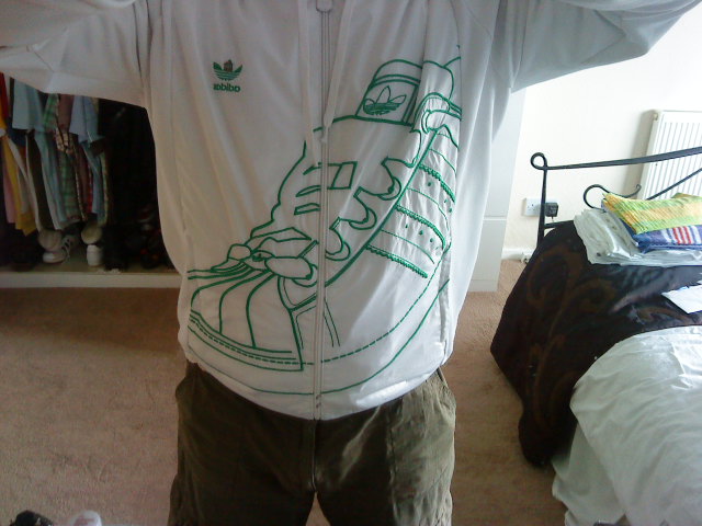Dress down day at work, matching green and whites, supes and tracky top. Love not having to wear a suit now and again. Very Happy